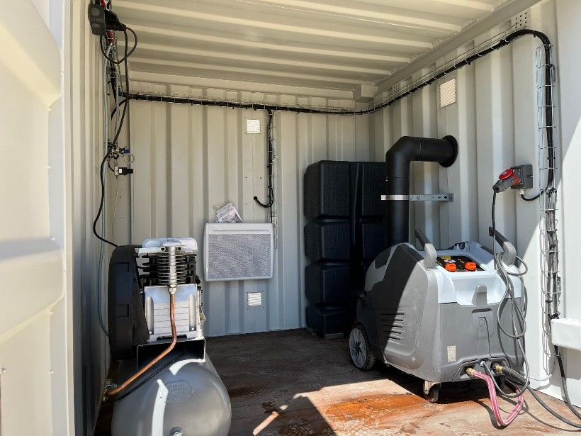 Equipements de lavage clés en mains : pas de construction pour le lavage de vos matériels , engins véhicules avec le container de lavage NHP d’Xpertus® .