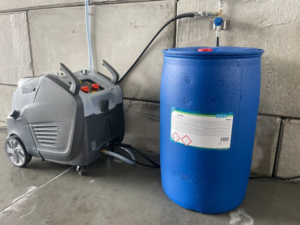 - pour les opérateurs : pas de tuyaux qui traînent : lavage plus rapide avec une potence de lavage à 360° (en option : pas de Nhp ni de flexibles à manipuler)